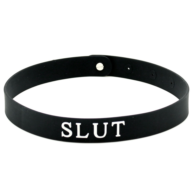 The word SLUT is written on the front of the collar in white letters.