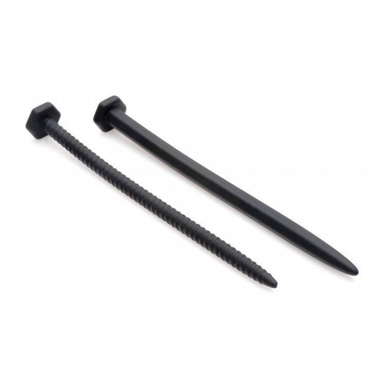 Both sounds are shaped like heavy-duty hardware, tempting you with a smooth, hexagonal nail and a spiral-textured screw. The flexibility and silkiness of the material ensure a comfortable insertion as it conforms to your inner curves.