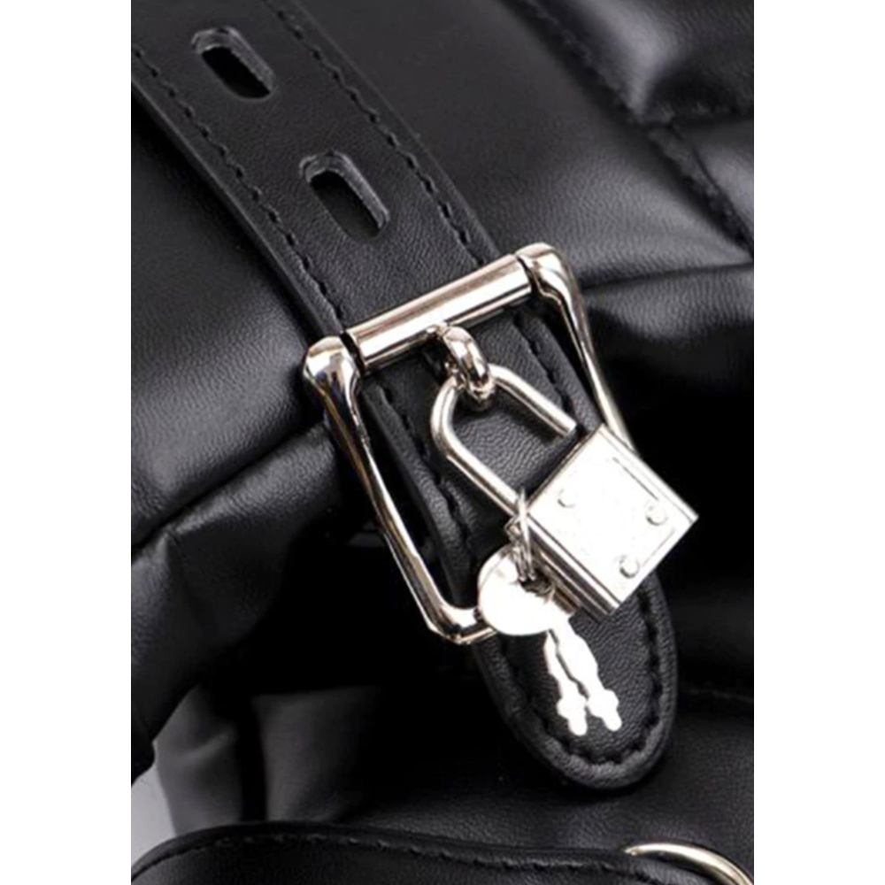 Soft lining and adjustable, with padlocks.